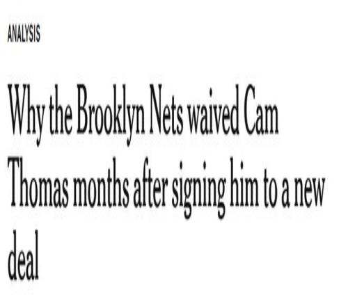 北京时间2月7日,篮网近日突然裁掉卡姆-托马斯的操作,引起不少球迷的关注。他们为什么要突然裁掉这位得分手?The Athletic名记Vorkunov撰文揭秘如下——