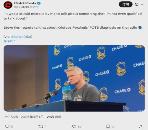 波尔津吉斯到底得了什么怪病?勇士和老鹰的交易达成后,雅虎记者Kevin O'Connor透露,波神在凯尔特人时曾被查出POTS(体位性心动过速综合征),这是自主神经功能障碍性疾病,导致运动员生理功能受限和体力下降。