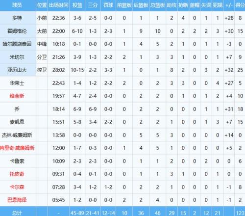双方实力严重不对等,于是上半场打完紫金军团就47-65落后,压根没有还手之力。