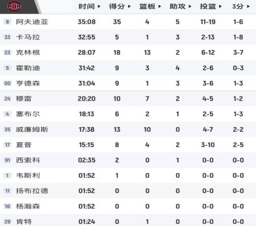 开拓者全场最佳必然是阿夫迪亚,19投11中,拿下35分4板5助。杨瀚森虽然没得分,但正负值高于克林根,这也说明克林根的防守确实是开拓者的短板。这场比赛过后,开拓者的战绩追平了快船,反超快船升至西部第8位。下场比赛开拓者只要在主场赢下摆烂的国王,便可以获得西部第8。