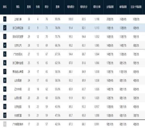 CBA常规赛已经达到第41轮,今晚进行了四场较量,浙江广厦加时117-104力克北控男篮,青岛男篮主场90-95惜败北京首钢,深圳男篮95-103不敌山东男篮,新疆男篮109-75大胜南京同曦。经过这几场精彩的厮杀之后,积分榜排名又发生了新的变化,深圳男篮输球依旧排名第三,北京首钢赢球之后占据了争四主动权,山东男篮获胜之后也是锁定了第八的位置,北控男篮输掉这场关键之战季后赛出线难度提升。