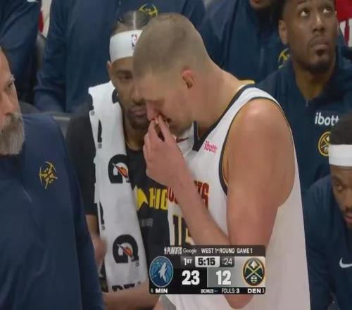 约基奇,鼻子被打到出血。