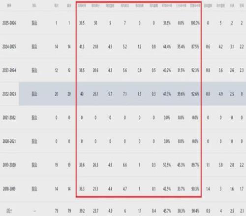 其实穆雷从来不是依靠罚球影响比赛的球员,本赛季常规赛场均罚球5.2次中4.6球,其中场均5.2罚为个人NBA生涯新高,以往通常每个赛季常规赛期间场均才站上罚球线3次左右,至于过去季后赛场均罚球数虽有所上升可也仅4次左右。