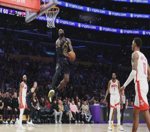 詹姆斯收比赛的这次扣篮,经典的人领球启动,火箭全队也是呆若木鸡。