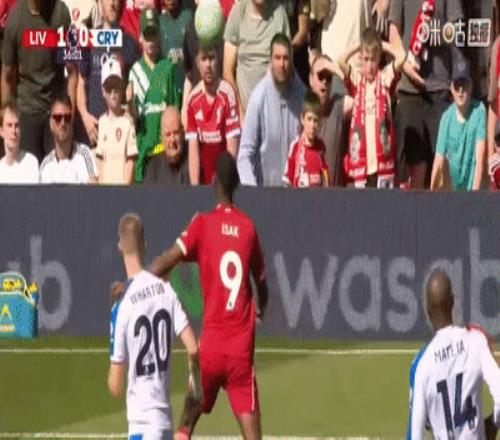 上半场直到进行到第35分钟,萨拉赫右侧接球强行突破后传中被封堵,禁区外麦卡利斯特迎球远射,结果伊萨克在禁区中路将球停下后侧身扫射将球打进,利物浦主场1-0领先。伊萨克打进复出后的首粒进球。