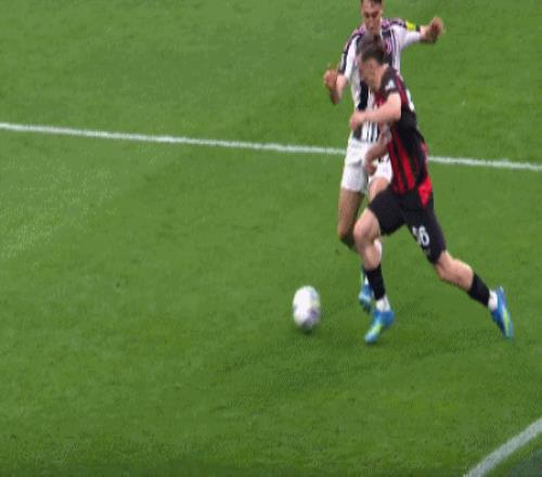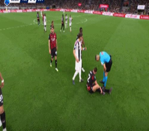 第8分钟,莱奥左路带球突破,洛卡特利铲球将其放倒
