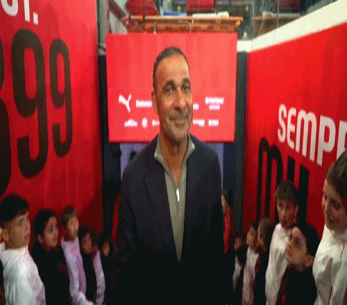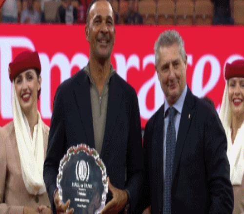 赛前仪式,古利特入选米兰名人堂,领取奖牌