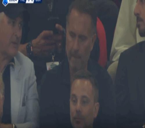 第28分钟,镜头给到看台,米兰老板卡尔迪纳莱现场观战