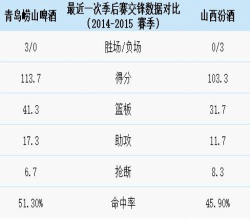 季后赛史上,两队仅在2014-2015赛季交过手,青岛崂山啤酒3胜0负。
