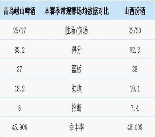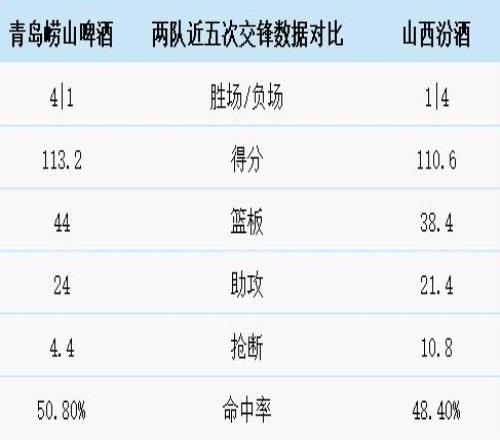 青岛崂山啤酒与山西汾酒历史上一共交手42次,青岛崂山啤酒17胜25负。