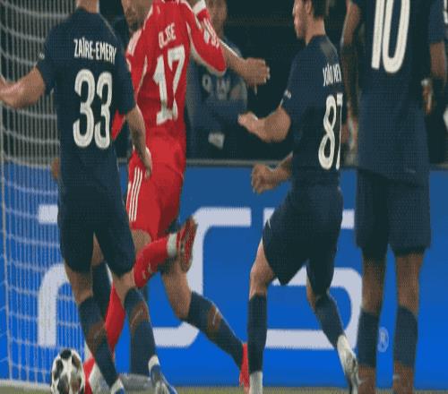 第41分钟,奥利塞中路接球,巴黎虽然4人围拢过来,却无人上前,奥利塞一脚怒射,两队再次回到同一起跑线。