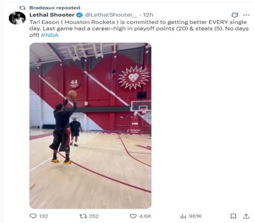 Lethal Shooter晒出了一段视频,伊森在三分线外不同的位置出手了14个三分球仅仅投丢1个,这或许就是伊森在季后赛三分球回暖的关键所在。