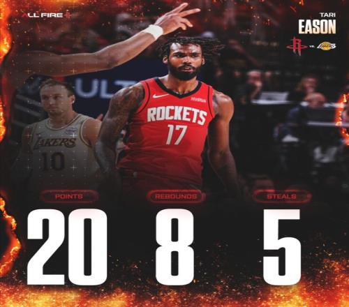 塔里-伊森绝对是火箭VS湖人G4最出色的球员,他全场不仅要紧贴勒布朗,他还要在外线命中三分拉开空间,他更要为火箭推速度下快攻,伊森在常规赛中段的阴霾似乎在季后赛已经烟消云散。