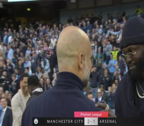 在曼城2-1战胜阿森纳的赛后,镜头捕捉到了阿德巴约的身影,他在职业生涯先后效力于阿森纳和曼城。